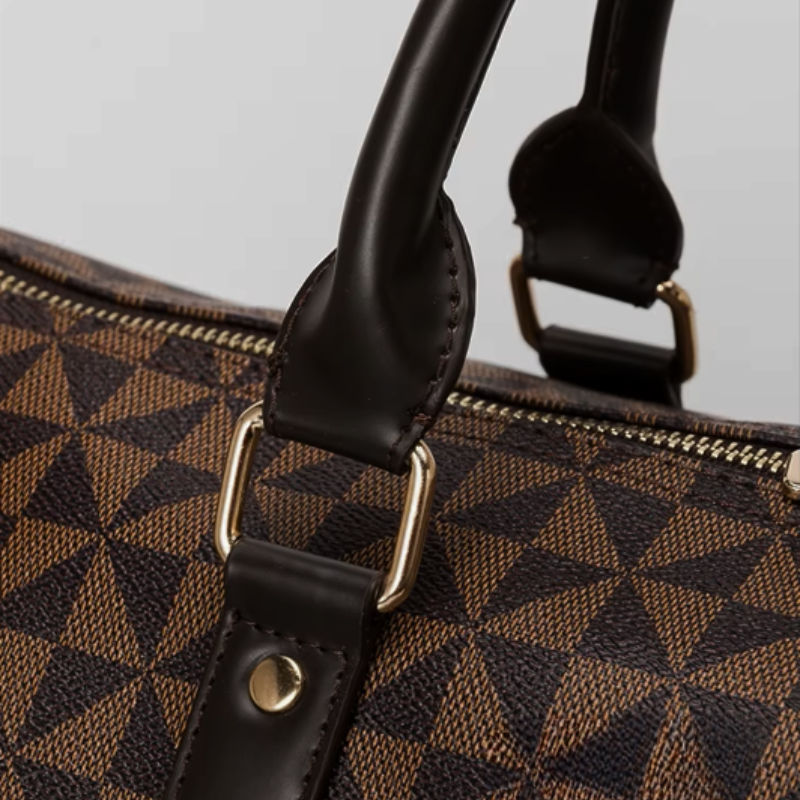 Das Sicherheitsschloss der Reisetasche ruht wie ein stiller Wächter am Gepäckstück. In warmem Metallic-Gold schimmert es dezent im Licht und verleiht der Tasche eine feine, edle Note. Sorgfältig gearbeitet, bewahrt es den Inhalt zuverlässig und schenkt unterwegs ein Gefühl von Ruhe, Ordnung und leiser Sicherheit.